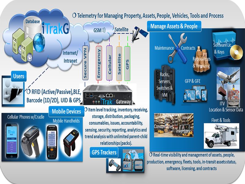 We deliver robust integrated solutions that are tailored to each customer’s operational processes, enabling the real time tracking of people throughout facilities, warehouses, yards and ships while increasing operational efficiencies. We provide leading-edge telemetry solutions that capture and deliver highly accurate, critical business information to improve operational efficiencies. Telemetry is the highly automated communications process of which measurements are made and data is collected by receiving equipment at remote points. This data is then transmitted to our comprehensible customized iTrakG system for monitoring, visibility and reporting of object data answering the questions “who, what, when, where, why and TAT (Time for Average Turnaround)” in real-time.